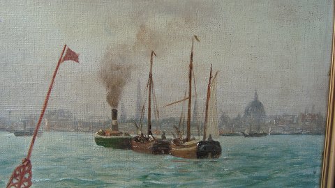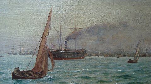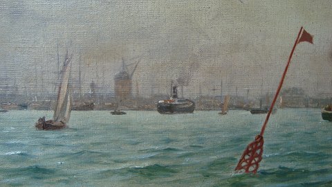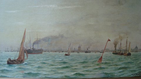 Maleri af Johan Neumann - Indsejlingen til København med Holmen, Frederiks Kirke mv.