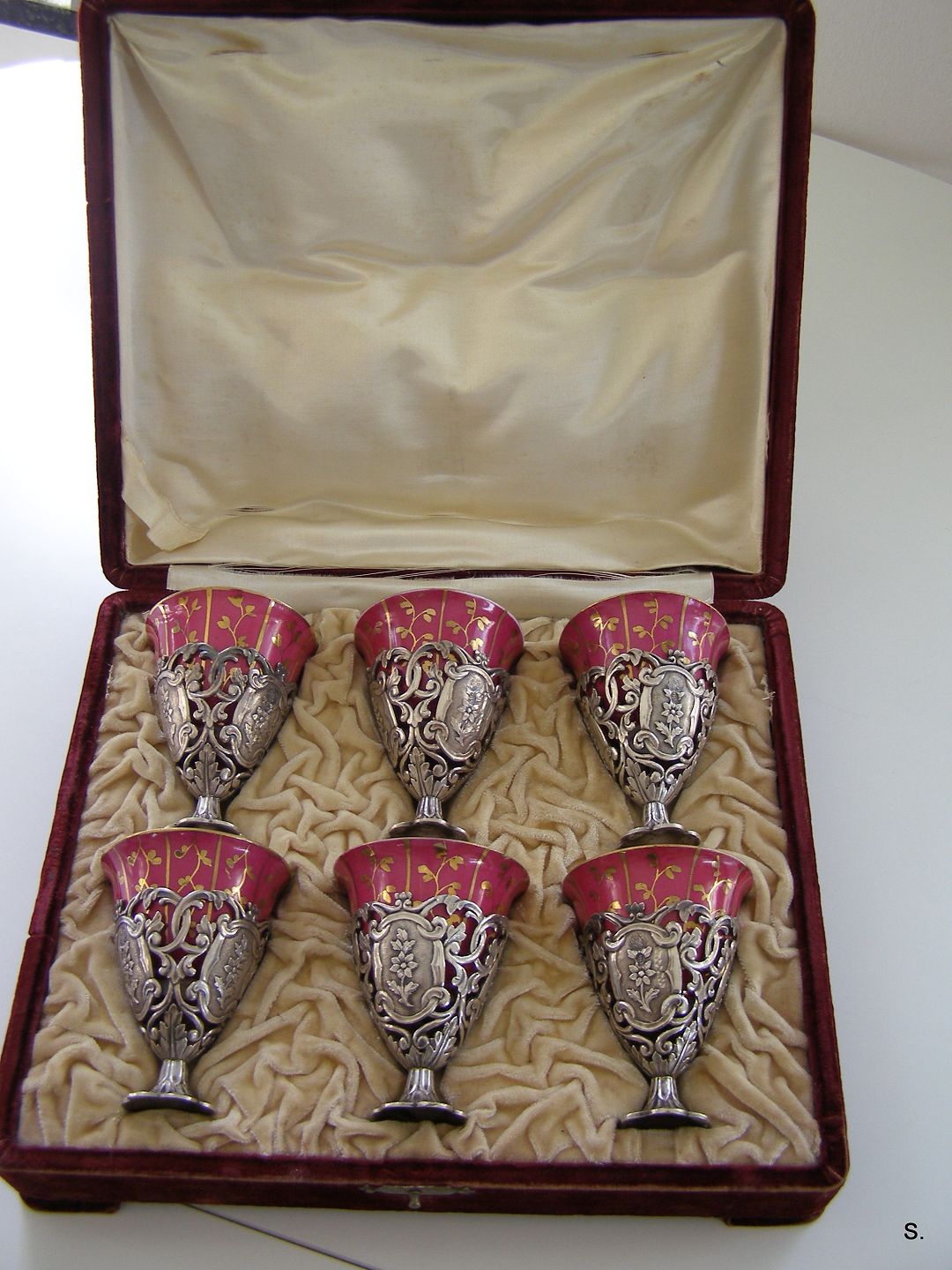 Meget sjældent Russisk Rejse-kaffesæt med porcelænskopper i sølvholdere
