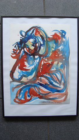 Akvarel af Finn Pedersen - Abstraktion.