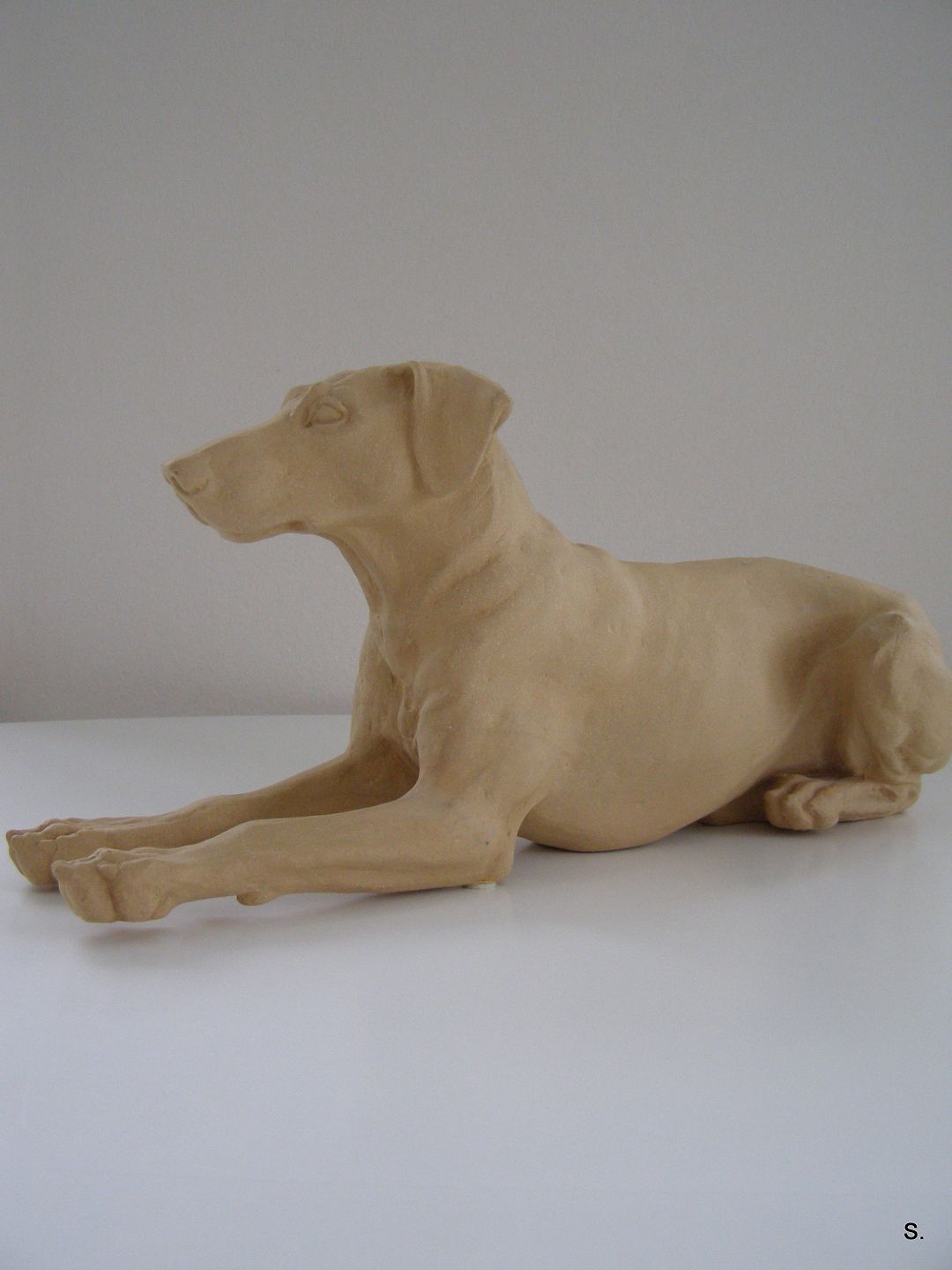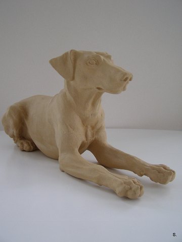 Yderst sjælden RC Fajance Doberman Jeanne Grut H:16,5cm. L:38cm.