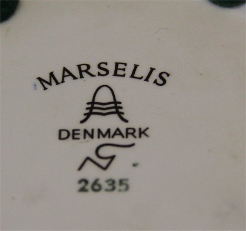 Aluminia kunstfajance 2635 Marselis Brun skål, rund-elipseformet med zig-zag mønster 18 x 18 cm Nils Thorson, 1953