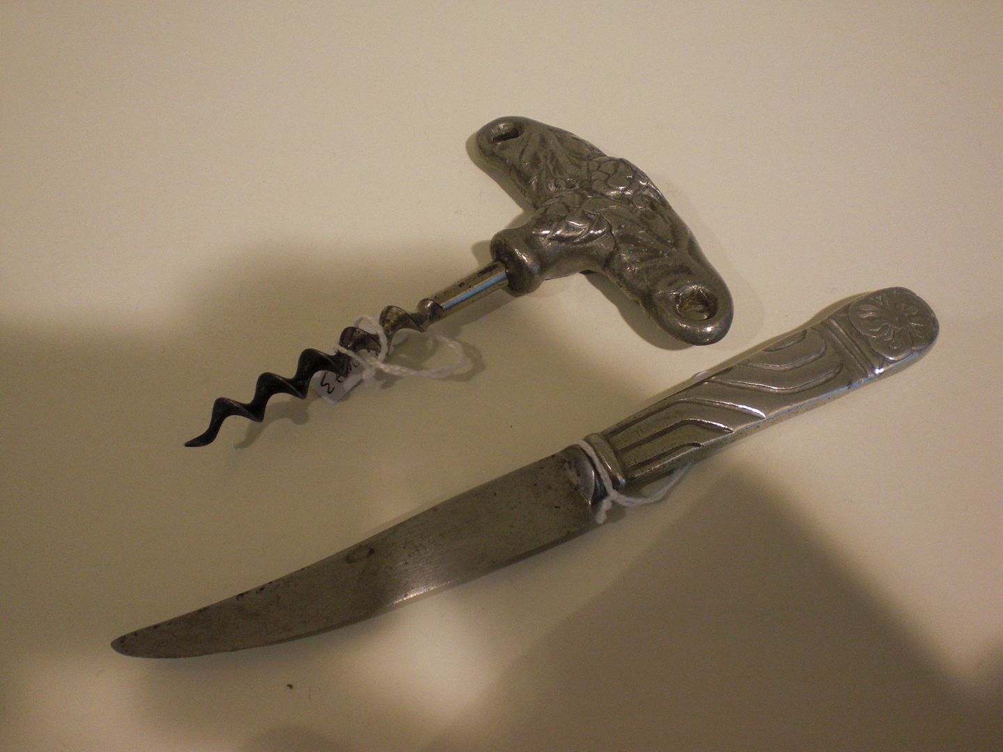 1) Proptrækker i tin og stål udført af Balling Eft. Stemplet HB 1519 = 1915. Længde: 11 cm bredde: 8 cm. Ikke i Ballin bogen.Solgt.