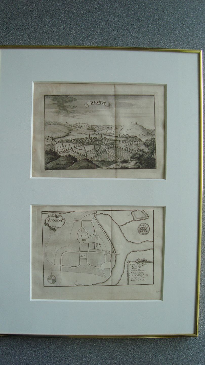 2 kobberstik vedr. Svendborg i samme ramme 1763-67.