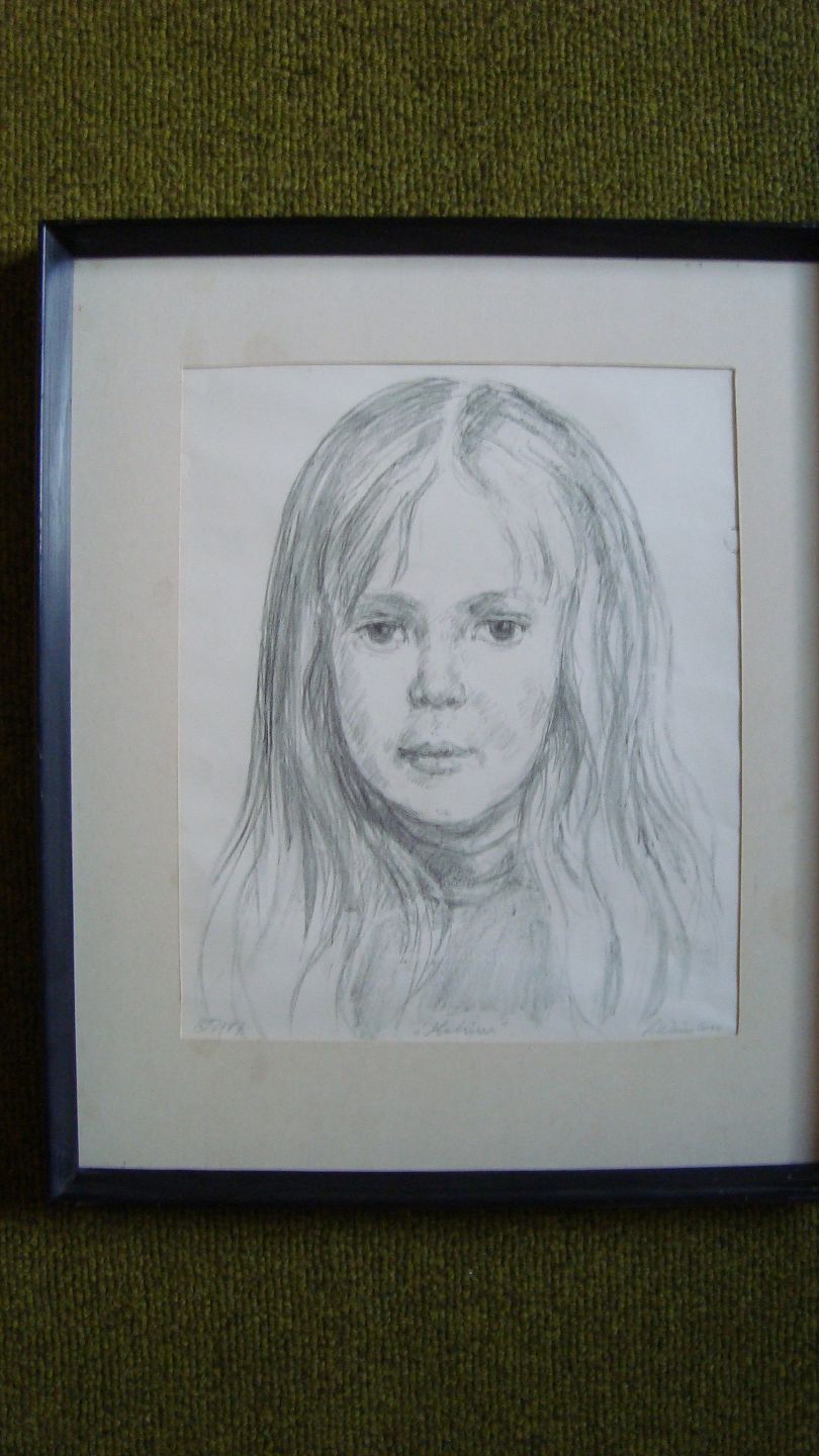 Stentryk af Lasse Winsløw 1977 - Pigeportræt "Katrine"