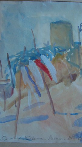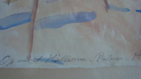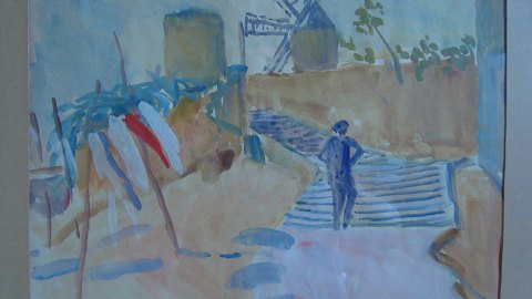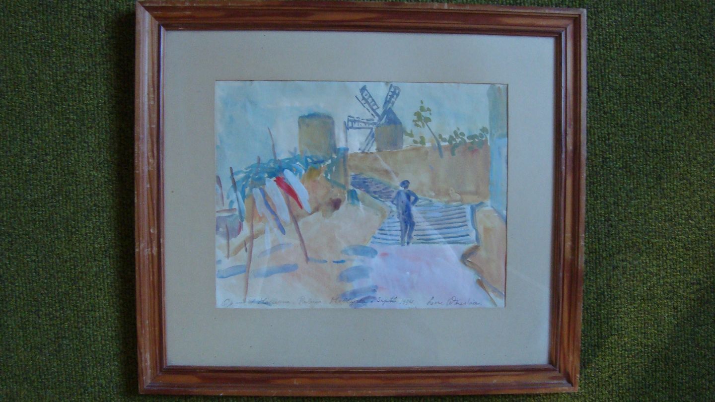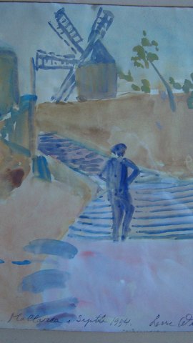 Akvarel af Lasse Winsløw 1954 Op mod møllerne, Palma, Mallorca.