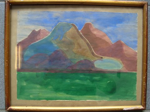 Akvarel af Palle Kierulf - Norsk fjeldlandskab.