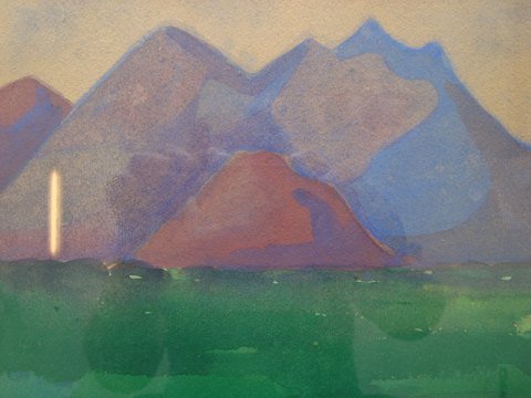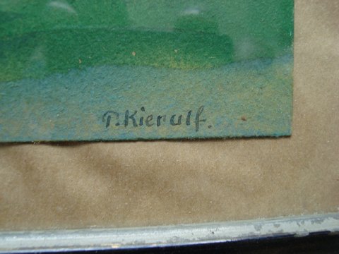 Text available in Danish: Akvarel af Palle Kierulf - Norsk fjeldlandskab - indrammet i antik sort lak/sølvramme.