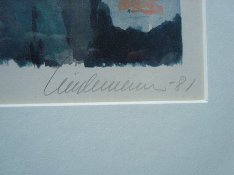 Litografi af Kai Lindemann 1981 - Komposition med dør.