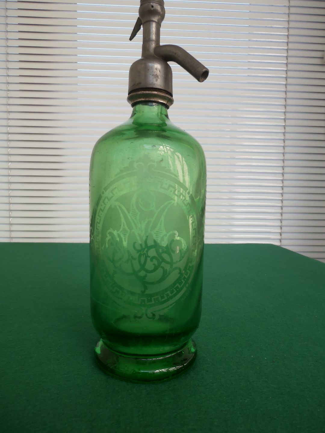 Sifonflaske af grønt glas, Frankrig ca. 1920.