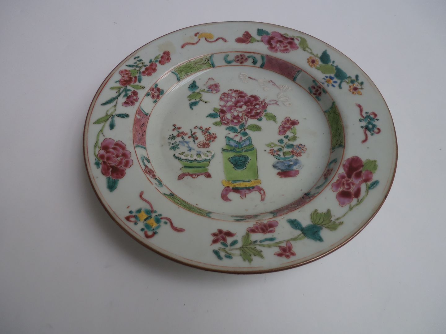 Family rose tallerken af kinesisk porcelæn, Kina ca. 1860. 22.5cm. i diameter.