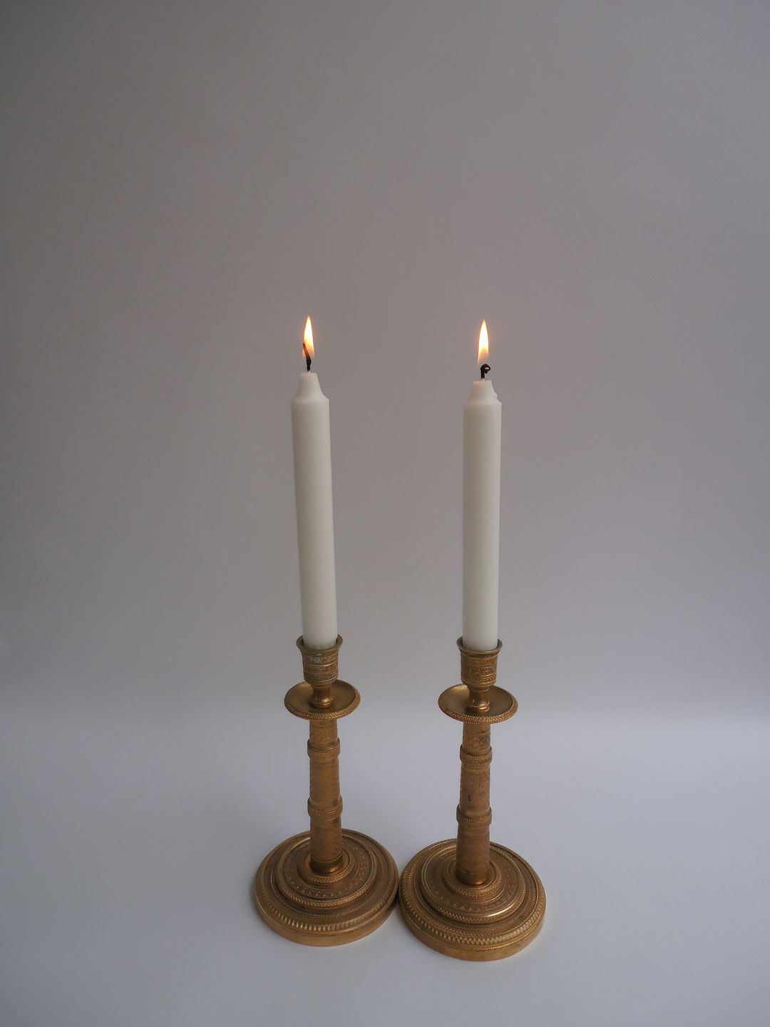 1 par lueforgyldte stager, Frankrig ca. 1880. 10.5 cm. høje.