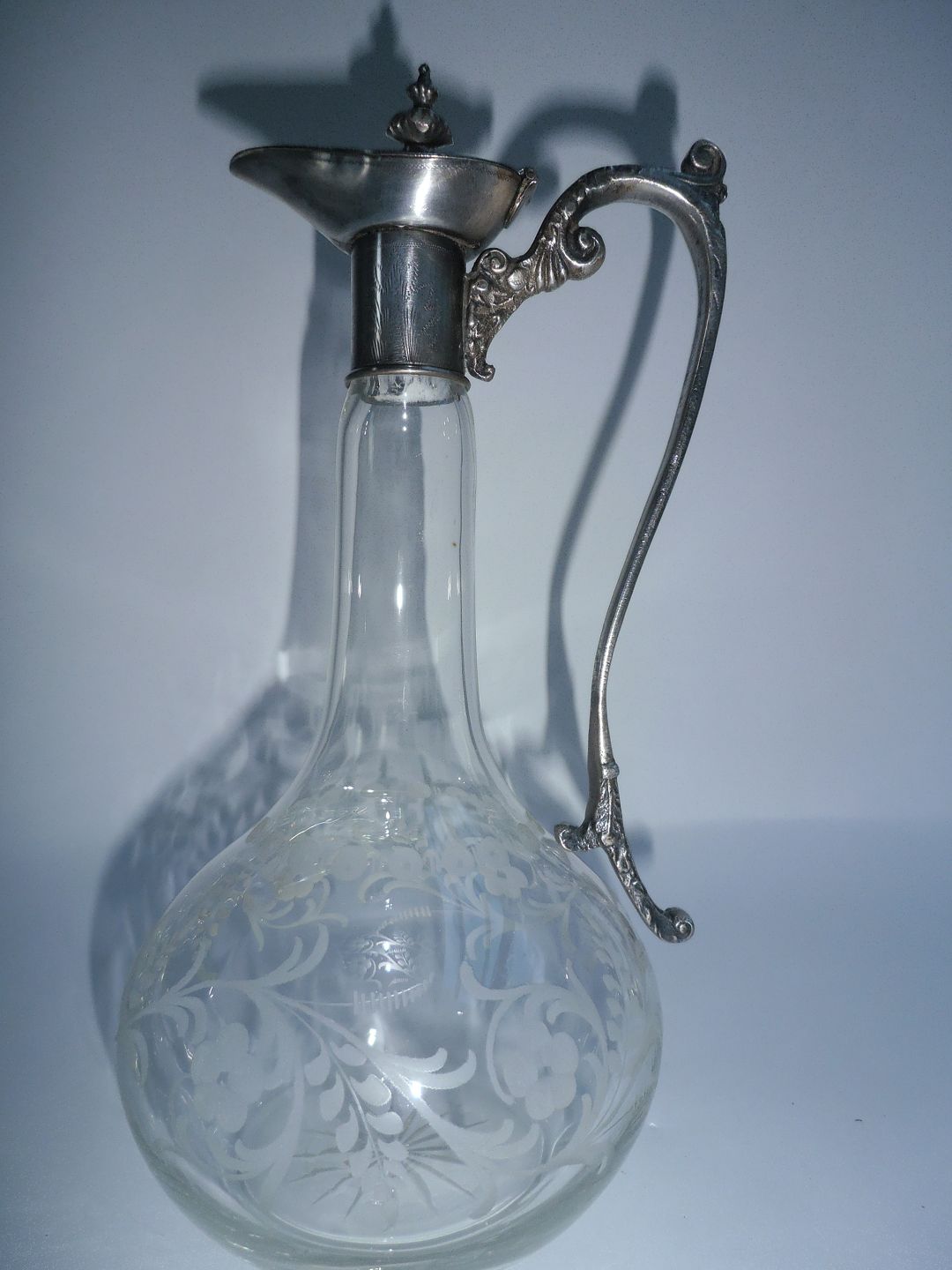 Glas karaffel m. tin besætning og sandblæst mønster, Frankrig ca. 1920.