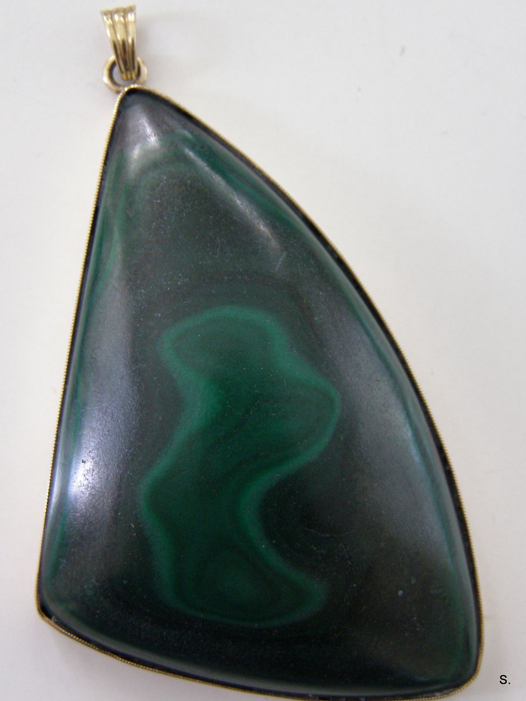 En grøn sten med mørke årer, som består af vandholdigt kobberkarbonat.