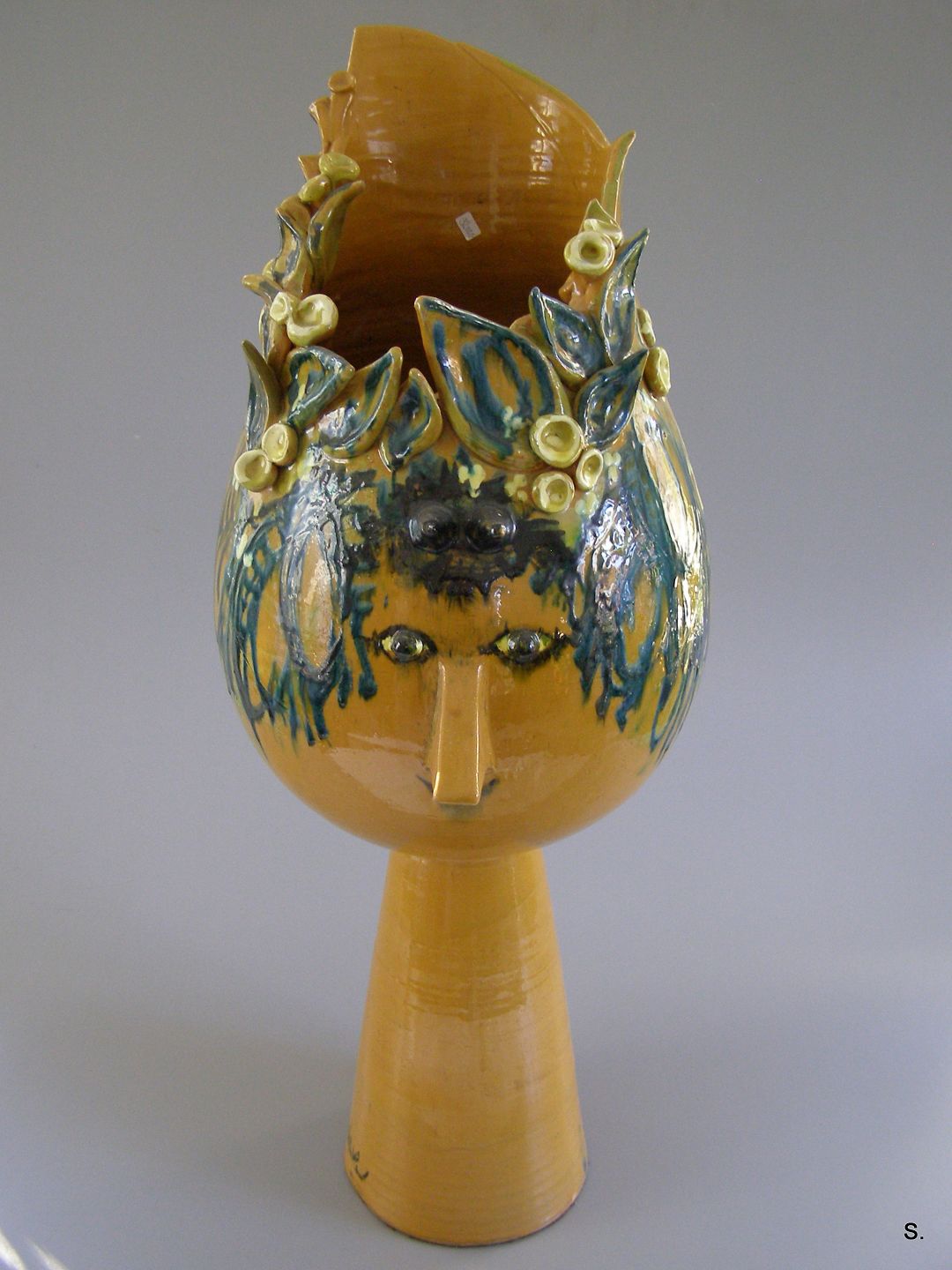 Flot stor Vase af Bjørn Wiinblad i form af kvindeansigt, sign. Bjørn Wiinblad H: 91 cm.