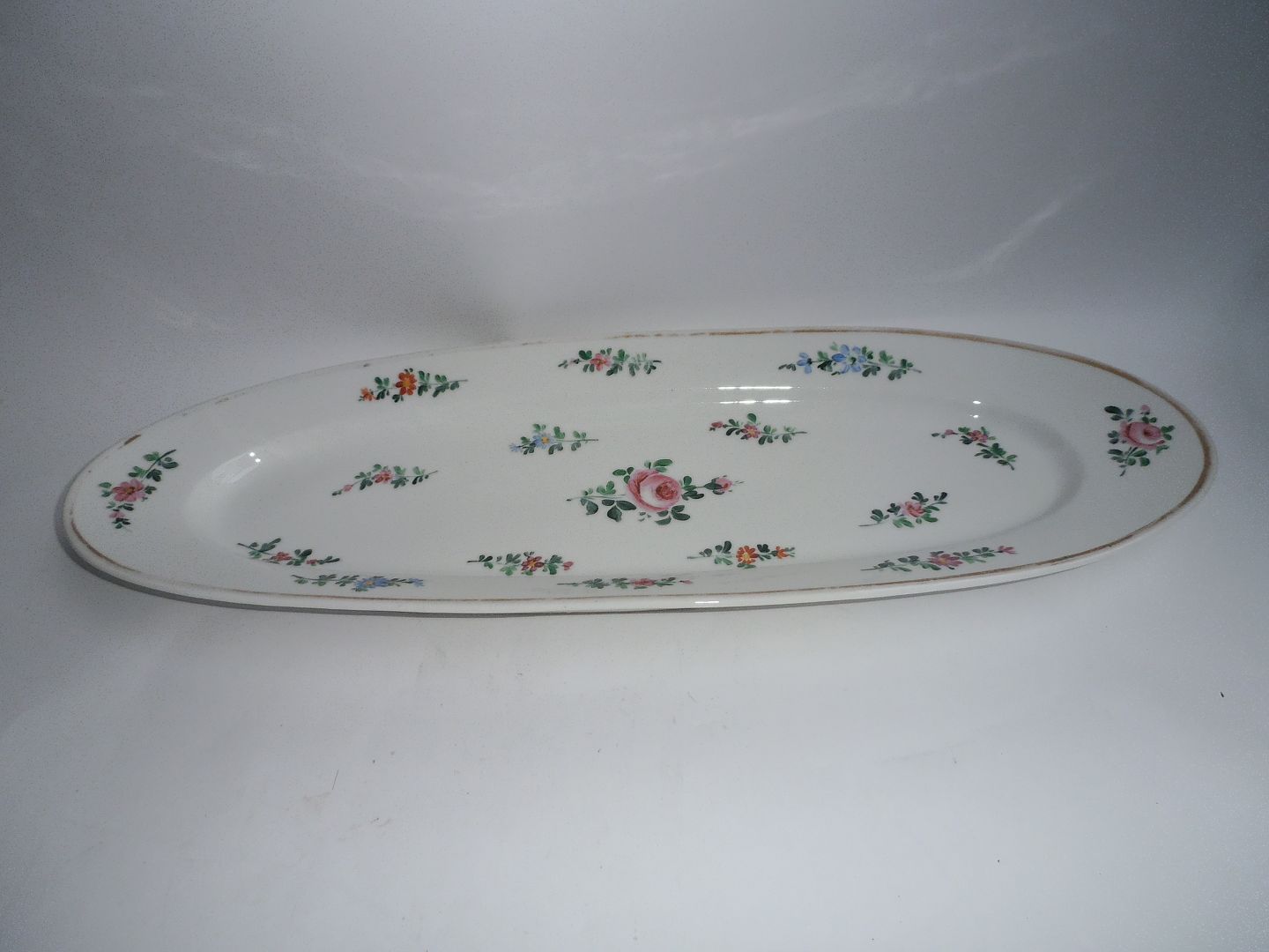 Fiskefad m. blomster, Frankrig ca. 1920. 61cm. langt og 22cm. bredt.