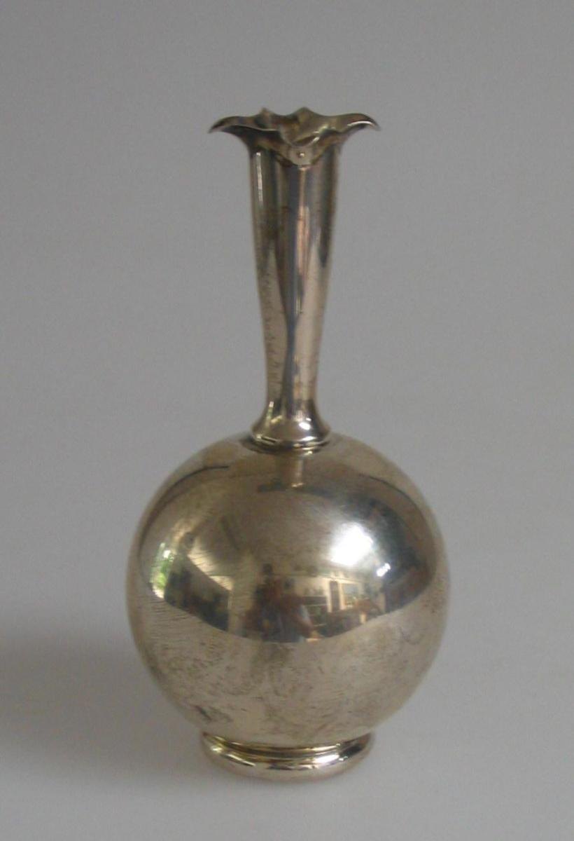 Orchid vase in silver, 20th century. Round body with conical neck with ruffles. Denmark, design .: CC Hermann. Stamped .: CC Hermann, Denmark, Sterling, M 68. Weight .: 78 grams. H .: 12 cm.