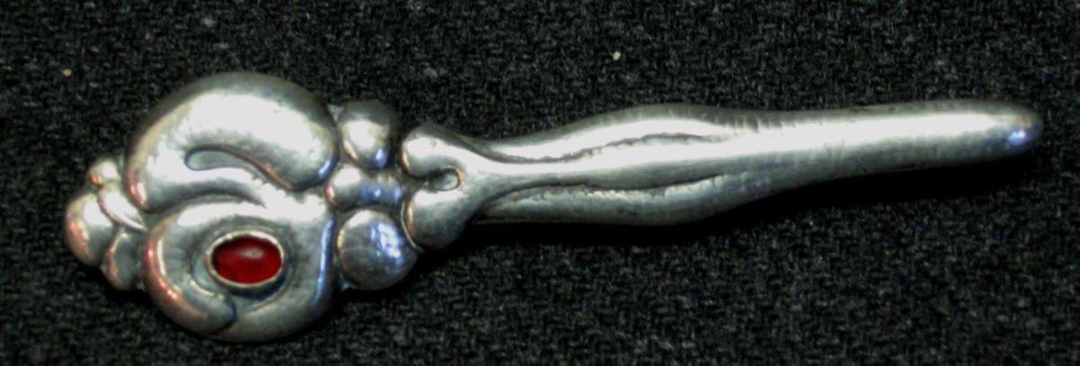 Art Nouvaeu Brooch in silver, around 1910, hammered, stamped: 826. Master Brand .: S. With grenade. With needle. Length .: 8 cm.