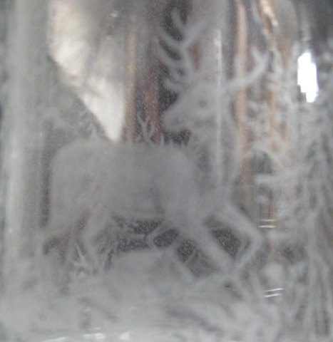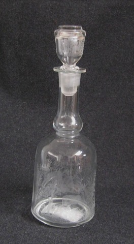 Holmeård karaffel med ætset hjortemotiv med prop med æstning. o. 1900. H.: 26 cm. Perfekt!