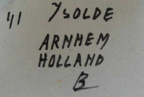 Hollandsk keramik skål, o. 1920, polykrom dekoration. Signeret.: Isolde Arnhem, Holland, signeret.: B. H.: 6,5 cm. Dia.: 25 cm.