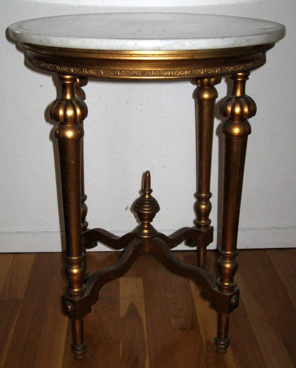 Fransk forgyldt bord med lys marmorplade, 19. årh.