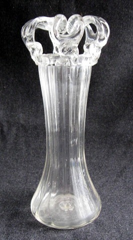 Brudekrone i klart glas, o. 1900, Fyns Glasværk - også kaldet blomsterskål - kronevase. Antagelig udført som fusk. H.: 25 cm.