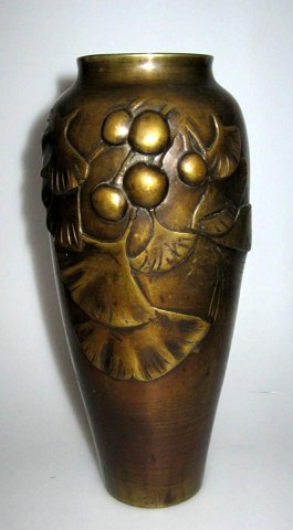 Japansk vase i bronze, o. 1900, dekoreret med blade og frugter fra Tempeltræet (Ginkgo biloba). H.: 28 cm. Usigneret.
