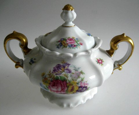 Kaffeservice i porcelæn, Rosenthal, Tyskland, 20. årh. "Pompadour", Selb. Bestående af sukkerkumme, kaffekopper, underkopper, bouillonkopper. Strøblomster i overføringsmønster med guldkanter.