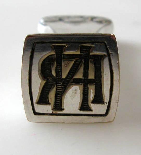 Segl i forsølvet metal, skønvirke, o. 1920, Danmark, med navnetrækket.: NR. H.: 8,6 cm.