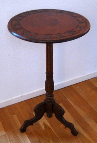 Tripod bord i mahogni, Danmark, 19. årh. Med skæringer på fod, mellemstykke og plade. H.: 80 cm. Dia. plade.: 46 cm.