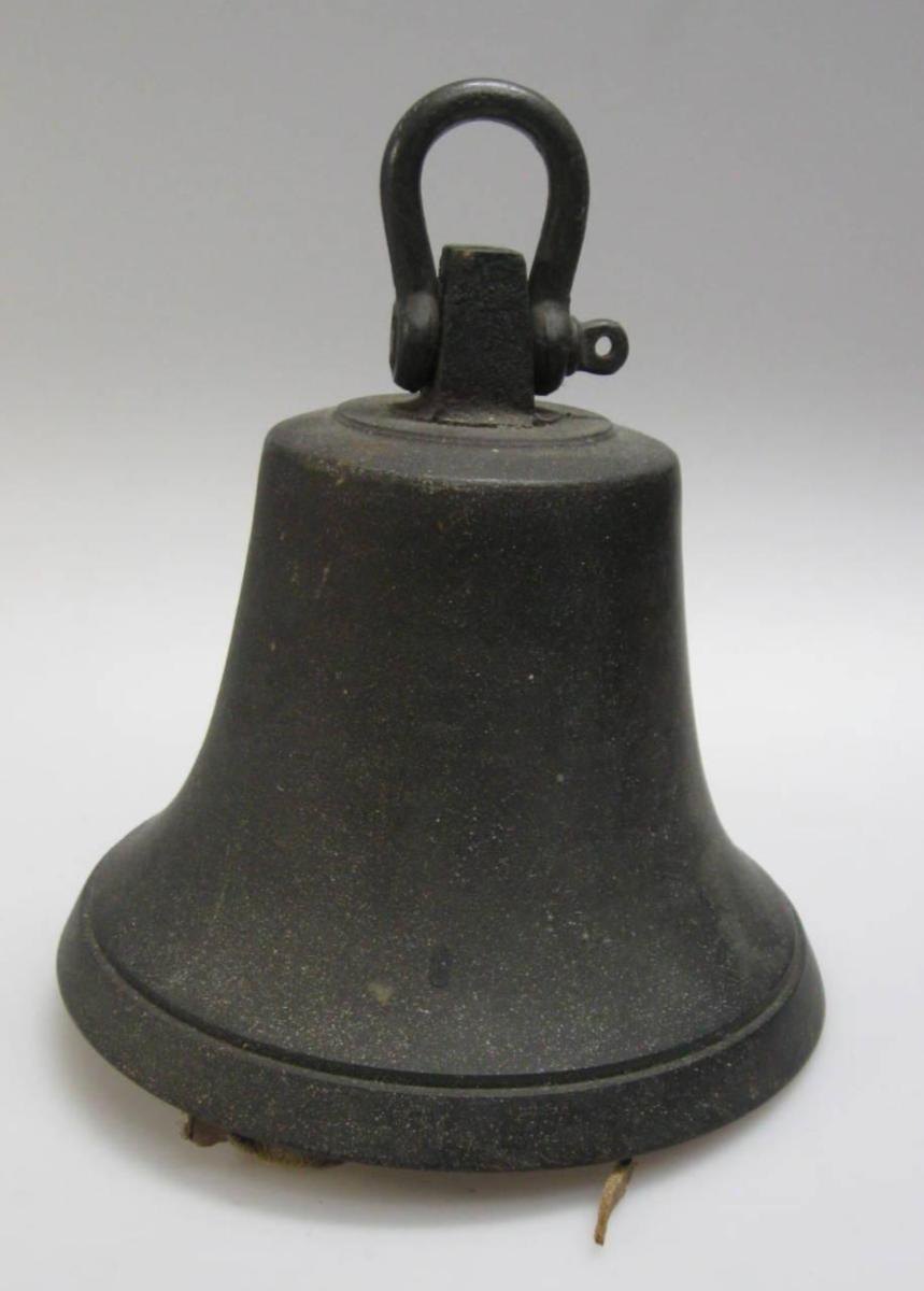 Klokke i malm, 19. årh. Danmark. H.: 23 cm. Dia. åbning.: 19 cm.