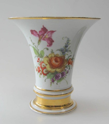 Porcelæns vase, Fürstenberg, Tyskland, 19. årh. Forgyldt med håndmalede blomsterdekorationer. H.: 19 cm.