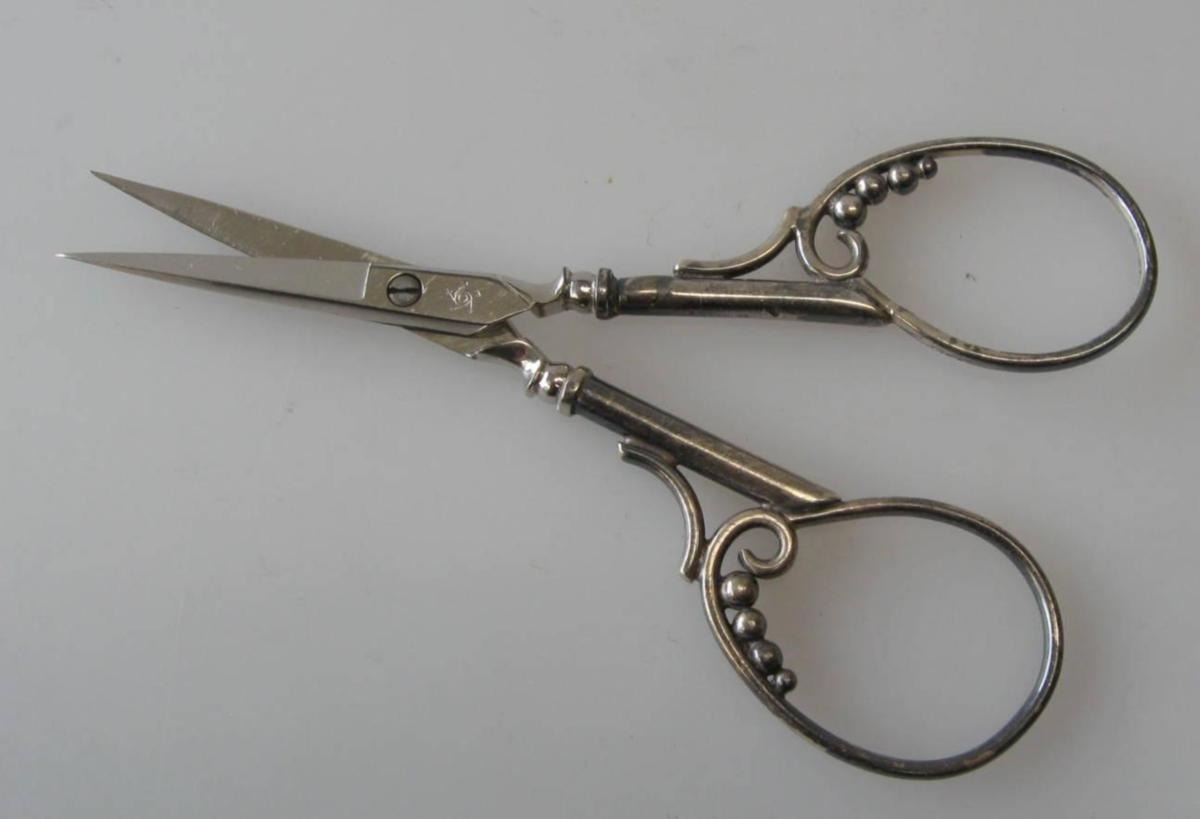 Small embroidery silver scissors, c. 1900. With decoration. L .: 10,5 cm.