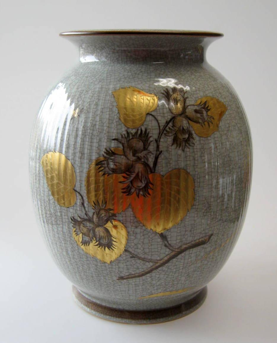 Craquelle vase, Den kongelige Porcelænsfabrik, dekoreret med nødder og egern