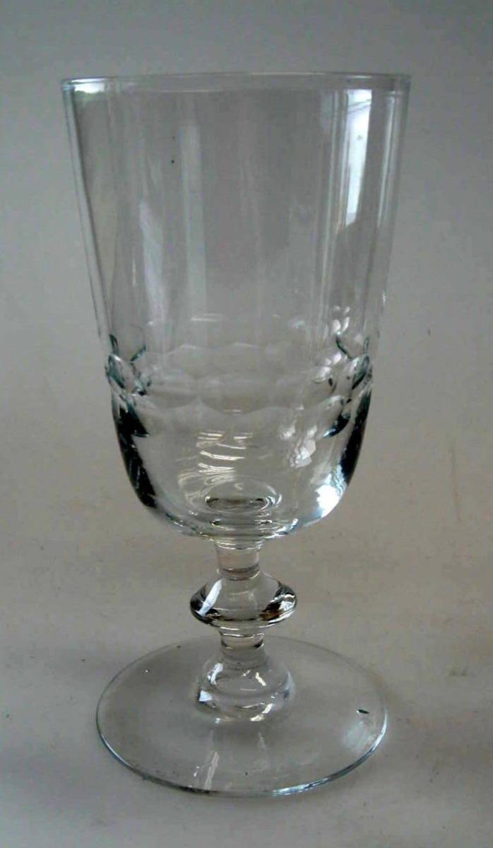 4 glas med slibninger, 20. årh. ca. 1920. Fod som Chr. 8 glas, høj kumme med slibninger. Danmark. H.: 16,5 cm. Pris pr. stk.