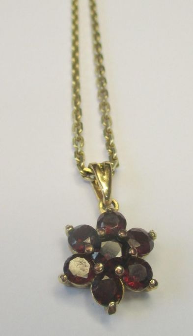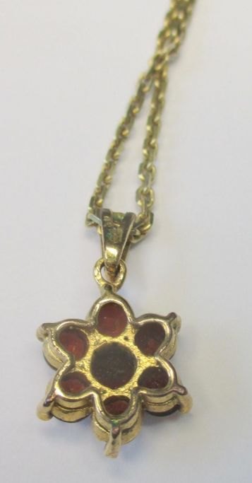 Forgyldt sterling sølv halskæde med granater. 20. årh.  Længde kæde: 45 cm.