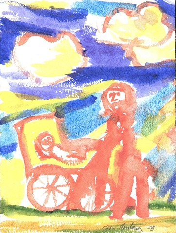 Jon Gislason (1955-): Mor med barnevogn i sommerlandskab. Akvarel på papir. Sign. Jon Gislason 98, (1998). 42 x 30 cm. Uden ramme