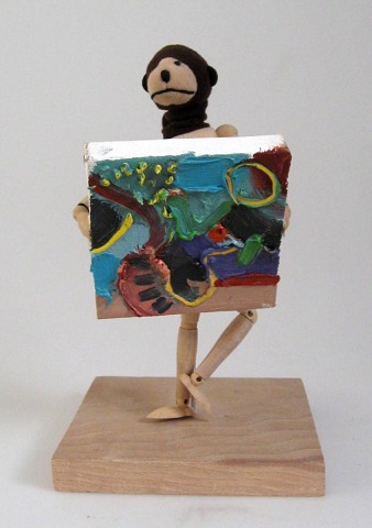 Bredtved. Michael (1959 - ) Danmark: Komposition. Træ, stof og acryl. H.: 26 cm. På fod. Signeret.: Bretved 09. På forsiden af region midtjyllands åbne døres katalog 2009.