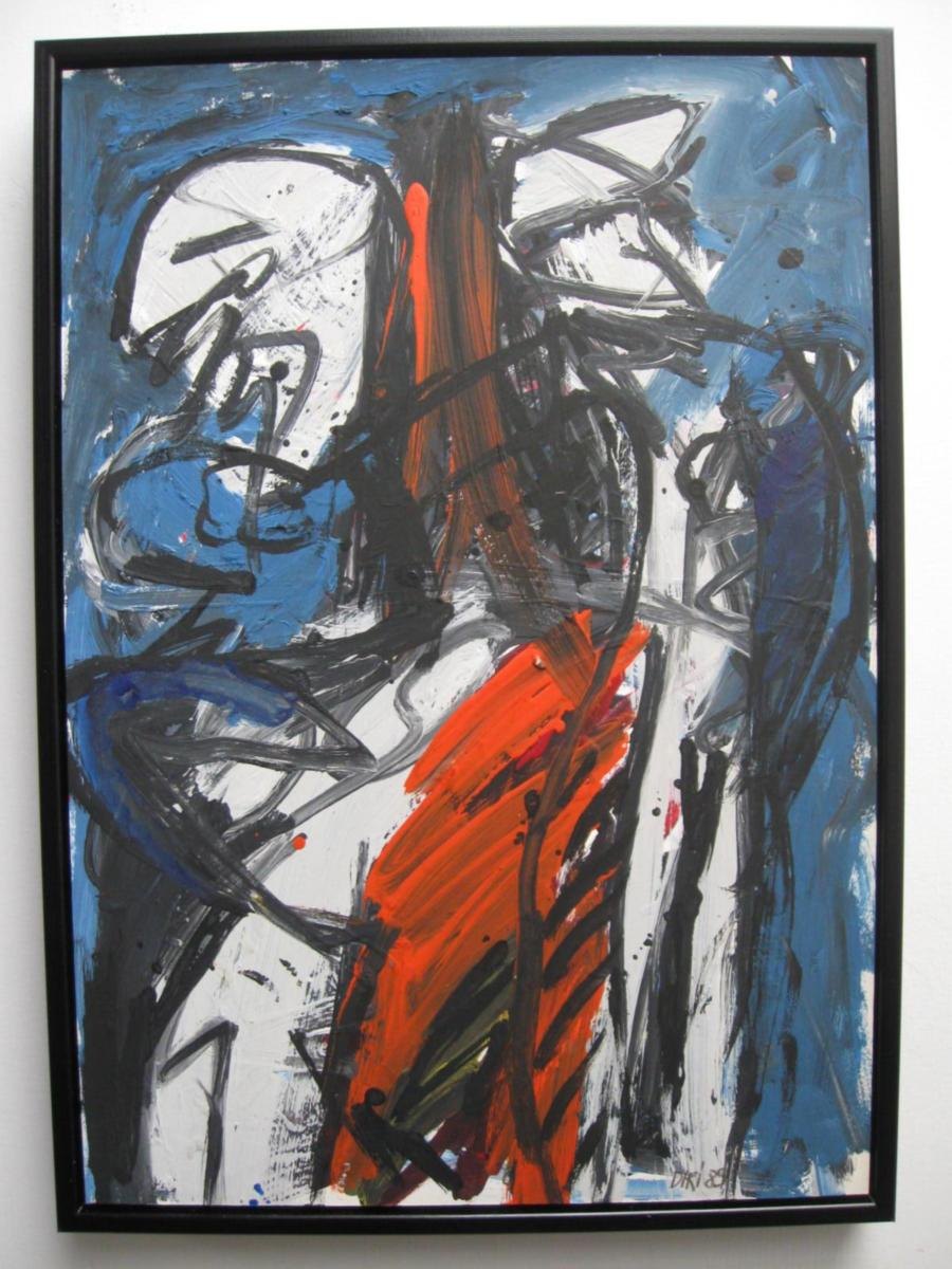 Strauch, Diri (1940 - ) Tyskland: Komposition. Acryl på papir/pap. 50 x 36 cm. Signeret.: Diri 89 Proveniens.: Drakabyggets Samling, Sverige. Cecilie Zwick - Nash samling.
