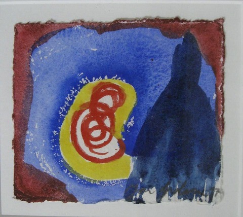 Gislason, Jon (1955 - ) Danmark: Komposition. Akvarel på papir. 13 x 15 cm. Signeret: Jon Gislason 97. Med guldramme.
