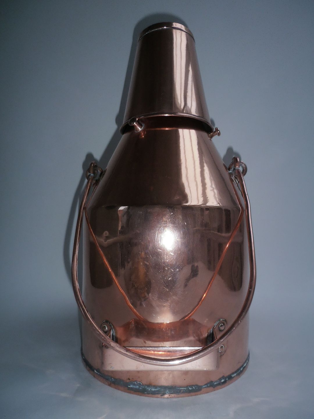 Madspand af kobber - løs låg som øse til at servicere suppen, Danmark ca. 1860.