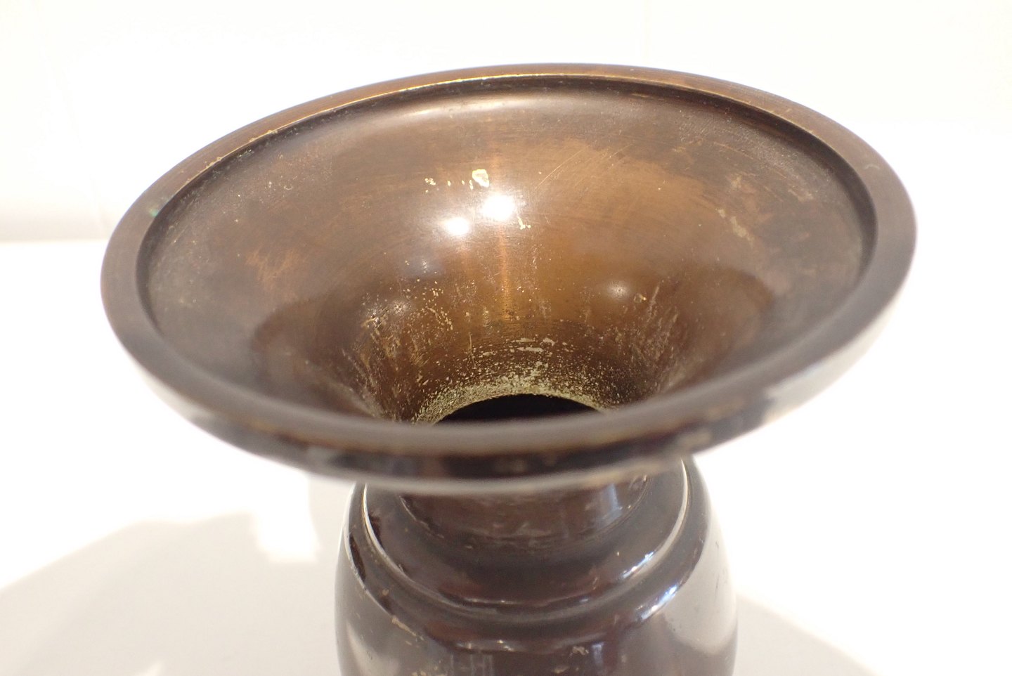 Lille kinesisk bronze vase til røgelsespinde - signeret. Ca. 1860. Højde: 10,5 cm. .
