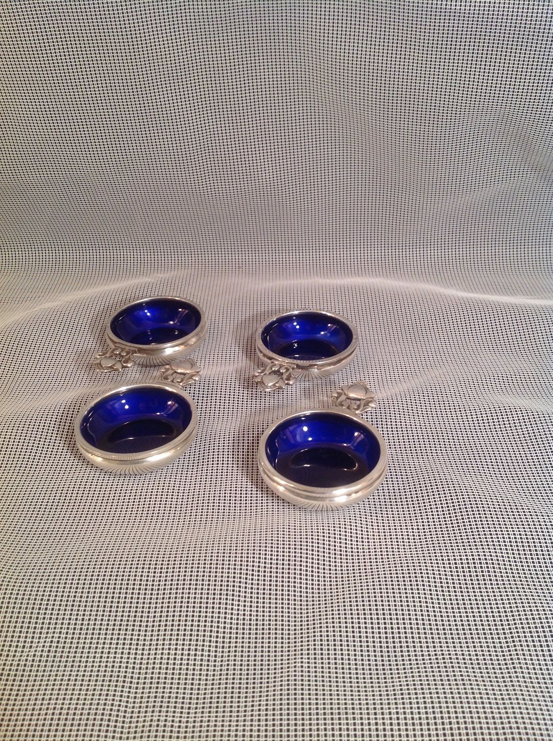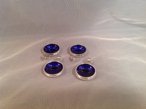 Konge Saltkar med Blå Emalje.Sterling Sølv Saltkar måler Længde 6 cm. Diameter: 4 cm.