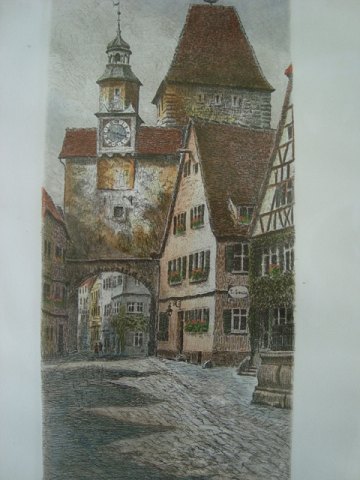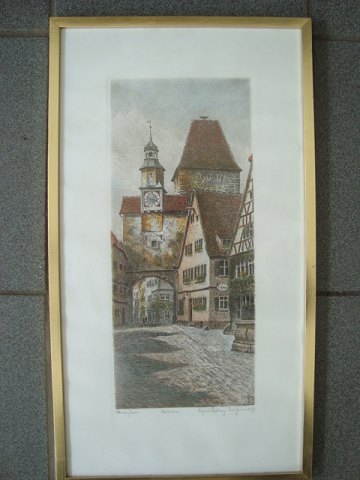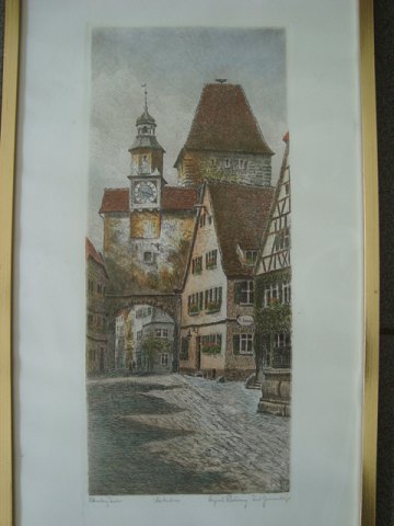 Radering af Ernst Geissendörfer - Parti fra Rothenburg.