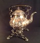 Svingkedel af sølvplet, skævknækket korpus, på tilhørende stand med brænder.