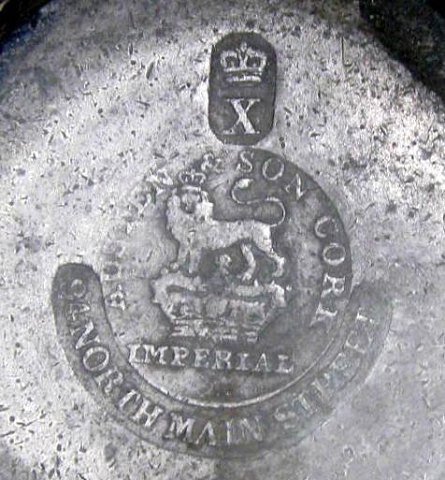 Antikt engelsk tinkrus, 19. årh. Konisk form.