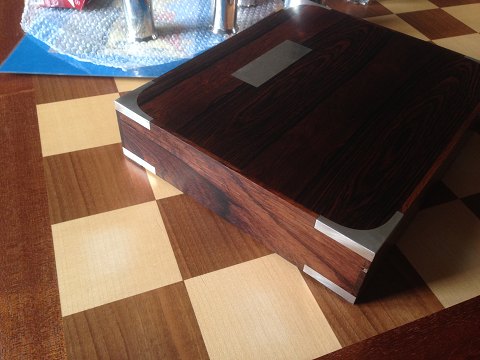 Kæmpe Hans Hansen Sterling Sølv Palisander Boks. Sjælden stor størrelse. I perfekt stand. 34,5cm x 28,5cm x 7,5cm. Som i ny stand. Uden lugt af tobak.