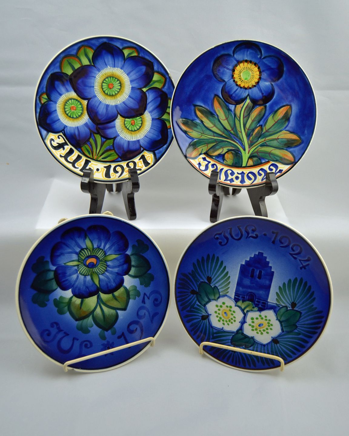 Juleplatter fra år 1921, 1922, 1923 og 1924 fra Aluminia.