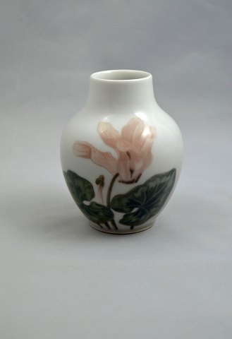 Hvid vase med lyserød blomst nr. 254/45a - H: 10 cm. Ø: 7,5 cm. Solgt