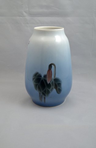 Vase med røde blomster nr. 254/1224 - H: 19,5 cm. - Ø: 11 cm. Pris: 400,-