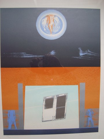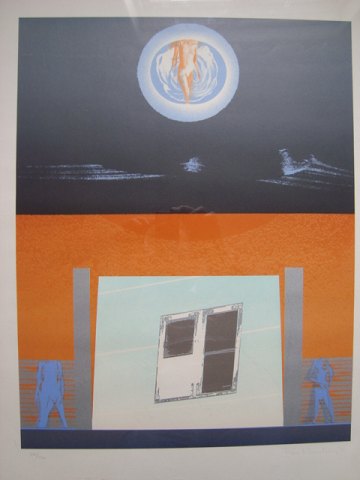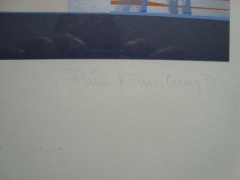 Farvelitografi af Finn Lohmann - Reflektion 1978.